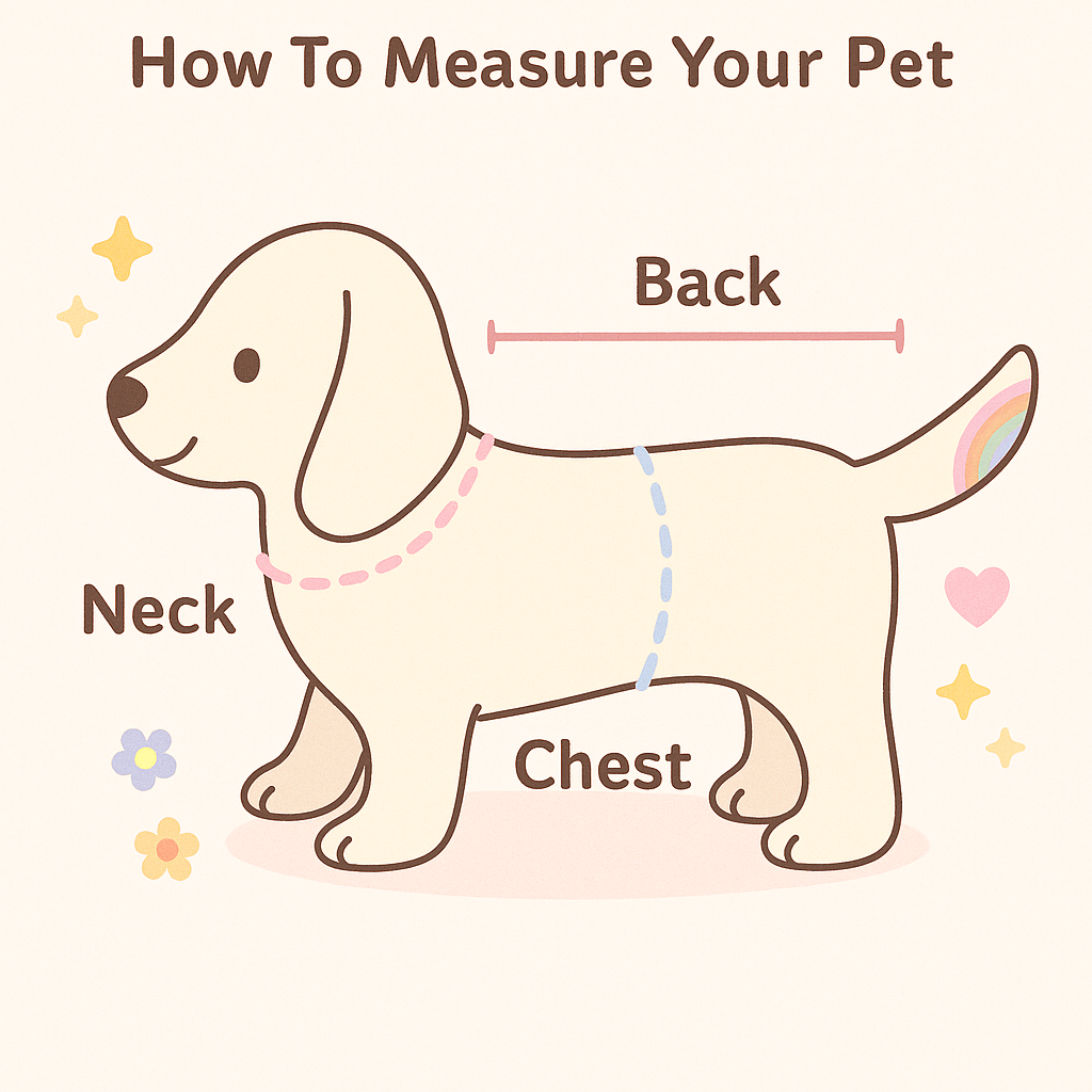 Each product page includes a detailed size guide. Please see guide on how to measure your pet below. If you’re still unsure, feel free to contact us before purchasing!