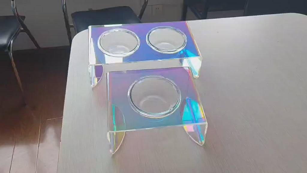 Transform your pet’s mealtime into a luxurious experience with the Iridescent Pet Feeding Bowl. Featuring a sleek, modern design with a stunning rainbow shimmer finish, this elevated feeder brings both sophistication and functionality to your pet’s space. Its contemporary look effortlessly blends with any home décor while standing out as a statement piece.